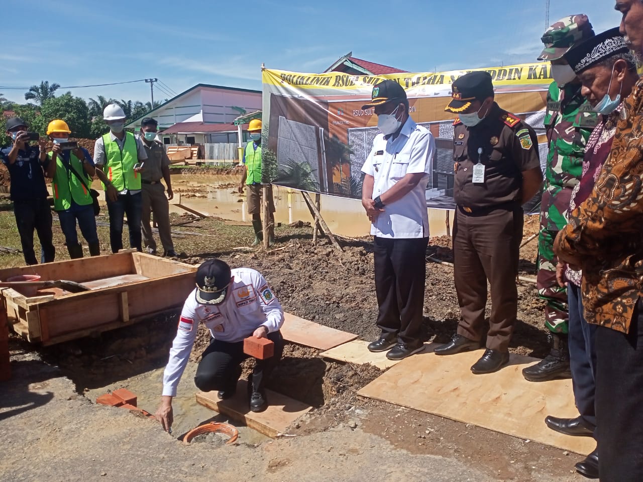 Bupati Tebo, Sukandar saat melakukan peletakan batu pertama pembangunan poliklinik